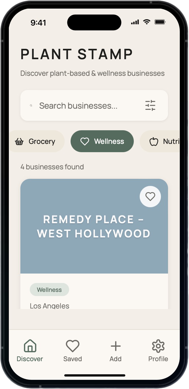 The app helps you find vegan and health-forward restaurants, cafés, and grocery spots, while tracking your positive impact through simple, feel-good stamps. One tap to explore, save your favorites, and make choices that are better for you and the planet.